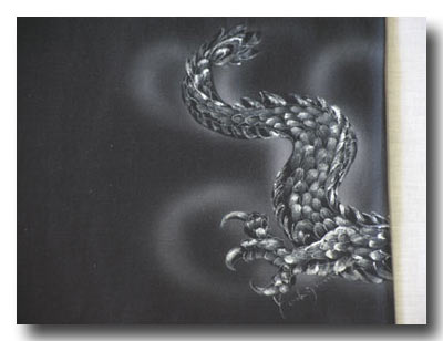 表には右下に天空を舞い踊る流が描かれており、裏面は右下に前面からの続きで龍が描かれております。 綿100%の生地を使用しており大変丈夫な製品です。